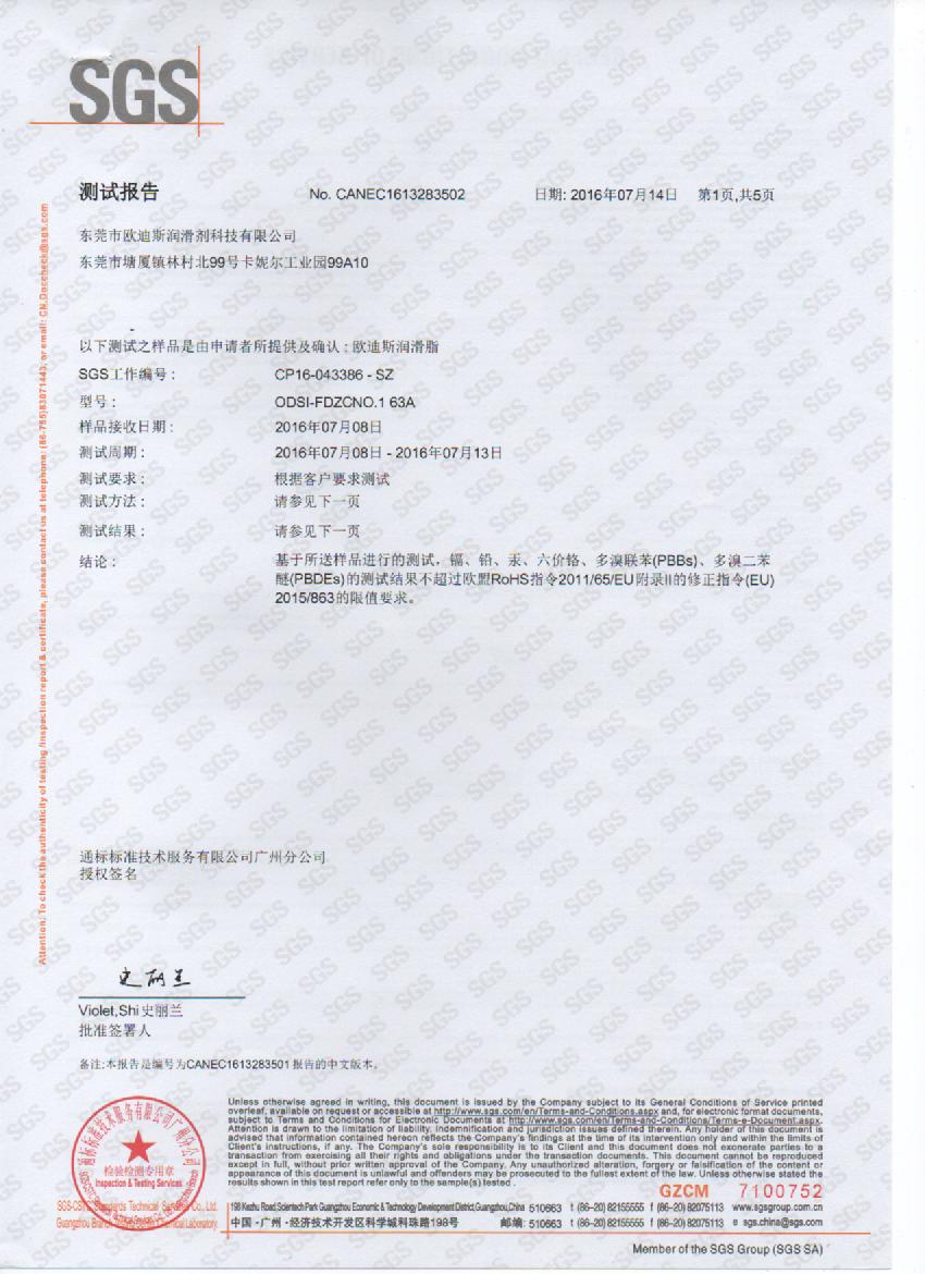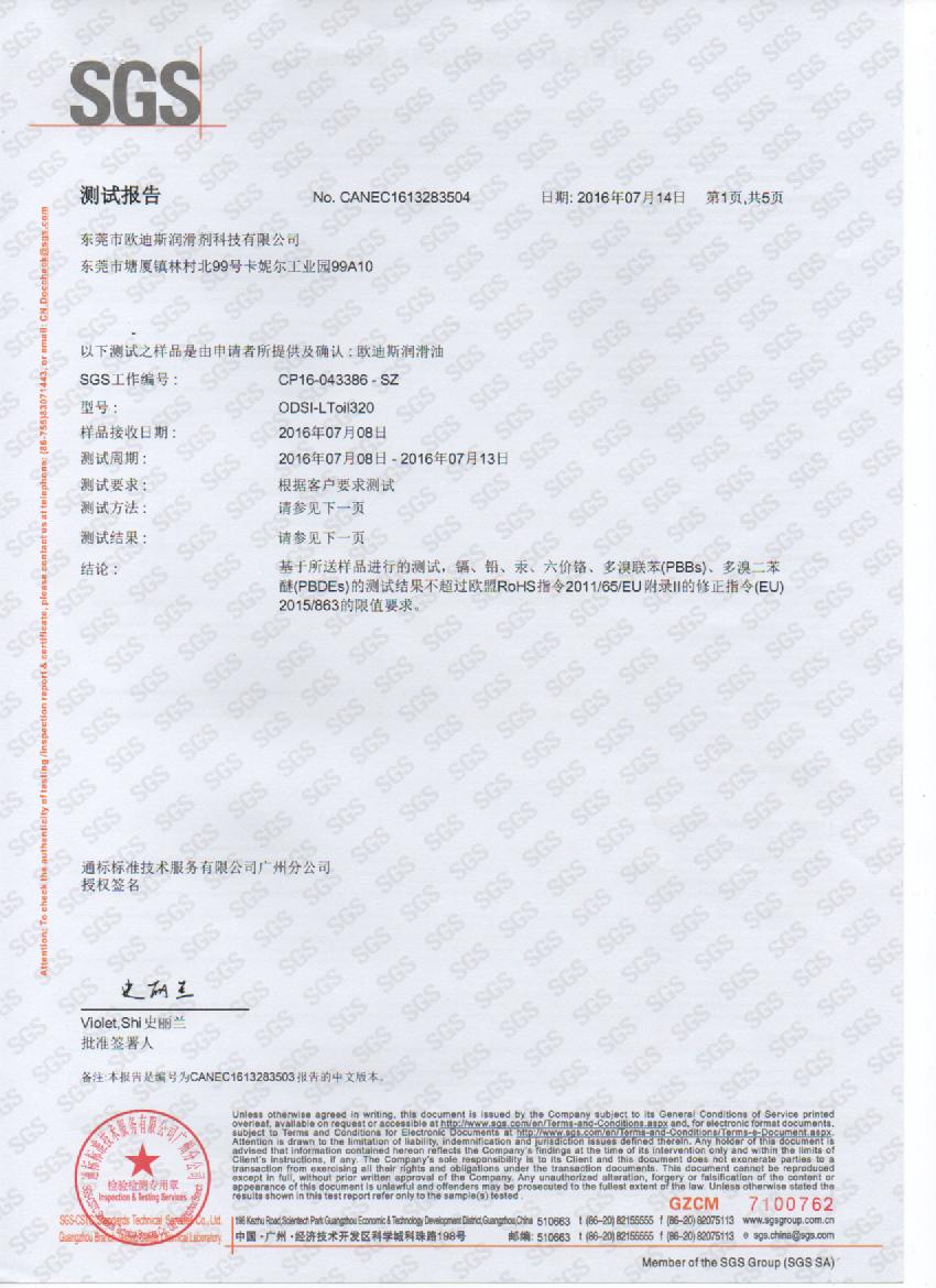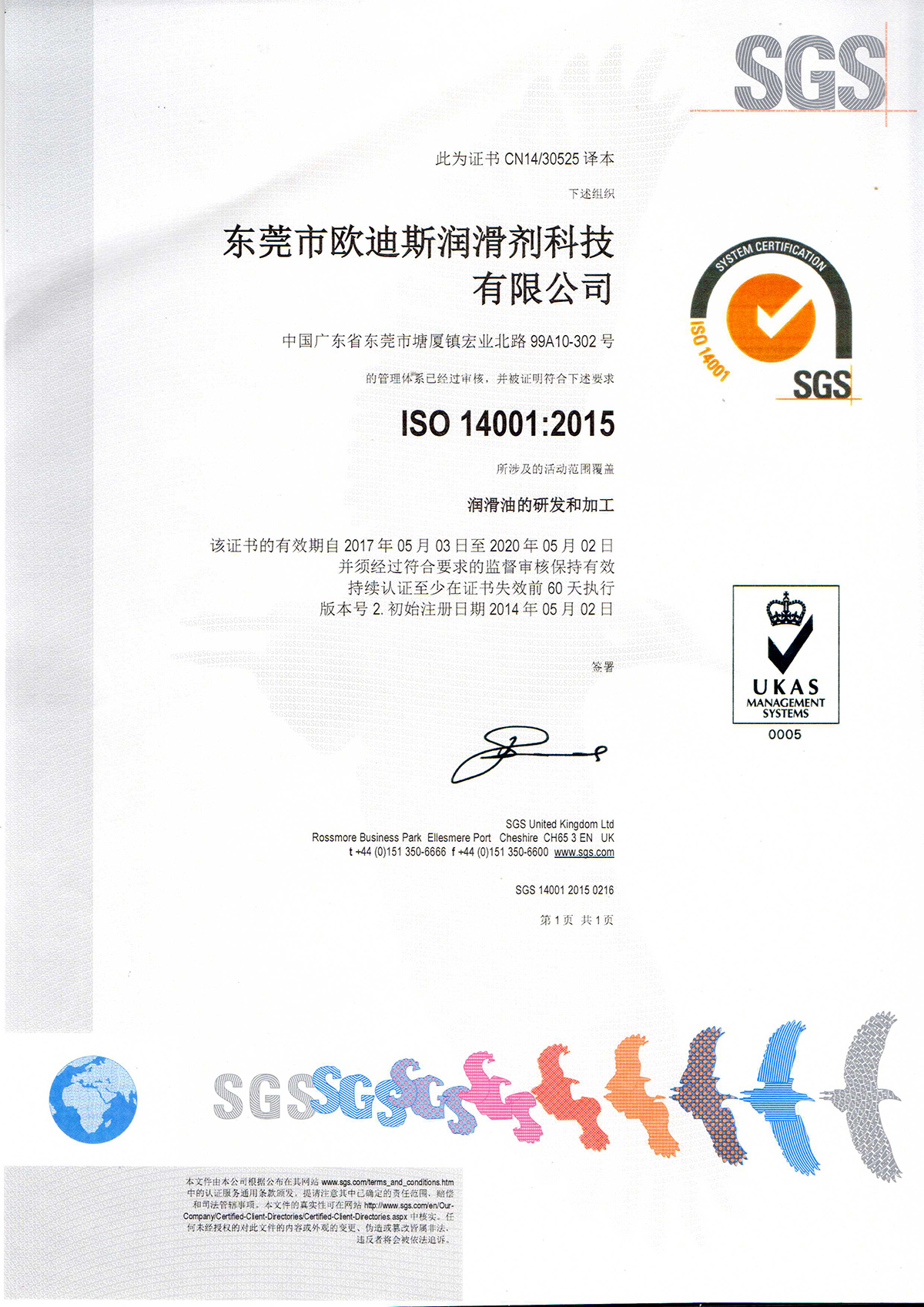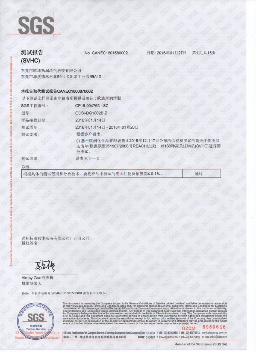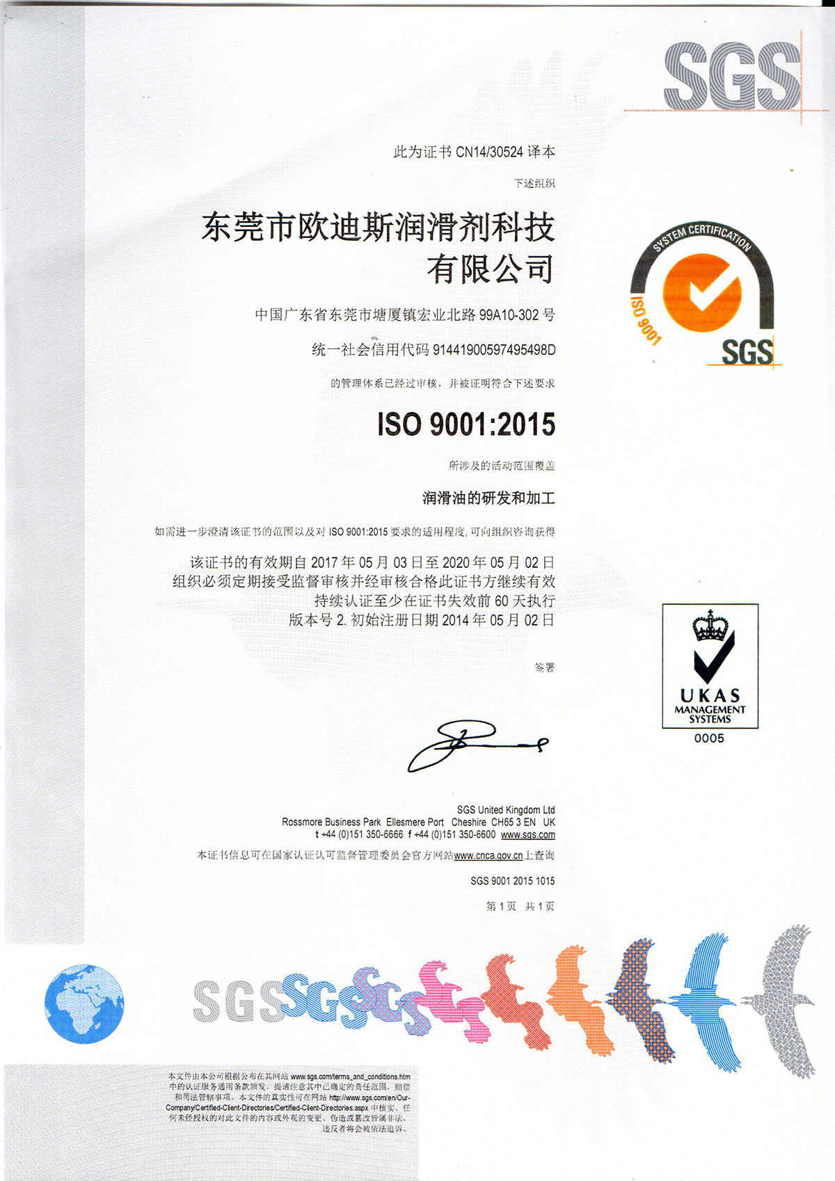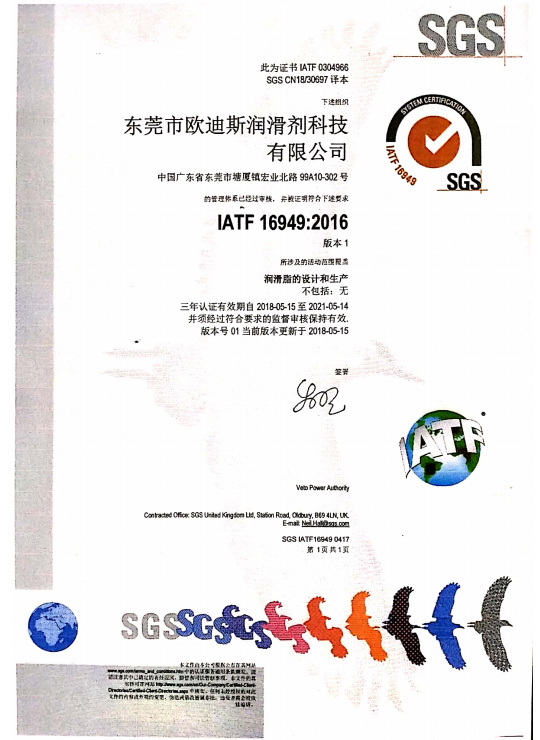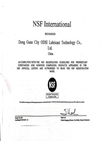 取得認(rèn)證單位:Dongguan ODS lubrication Co., Ltd.