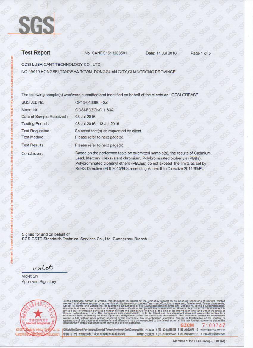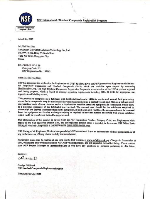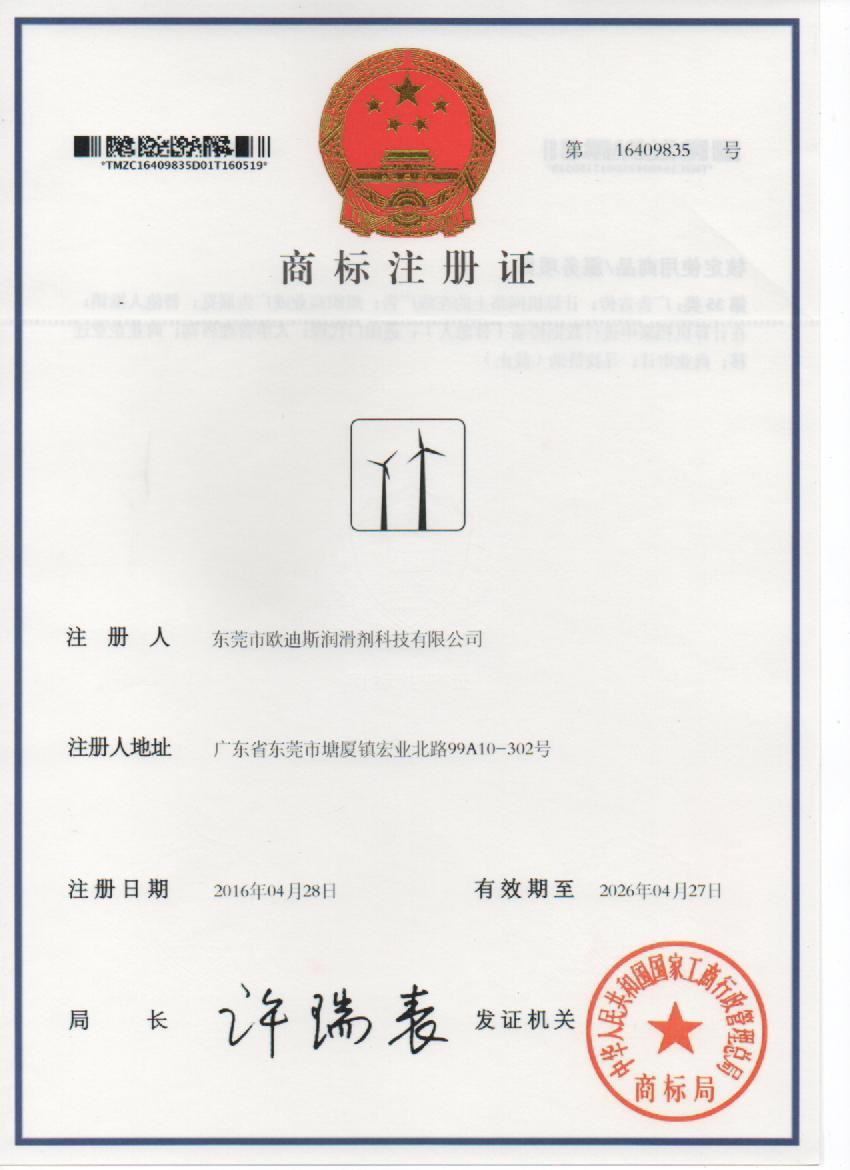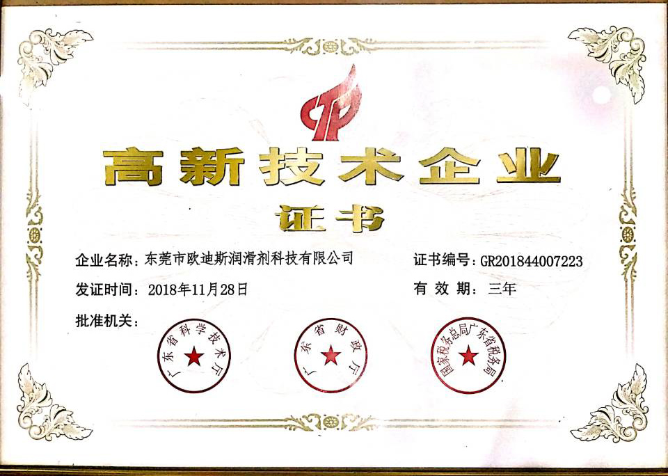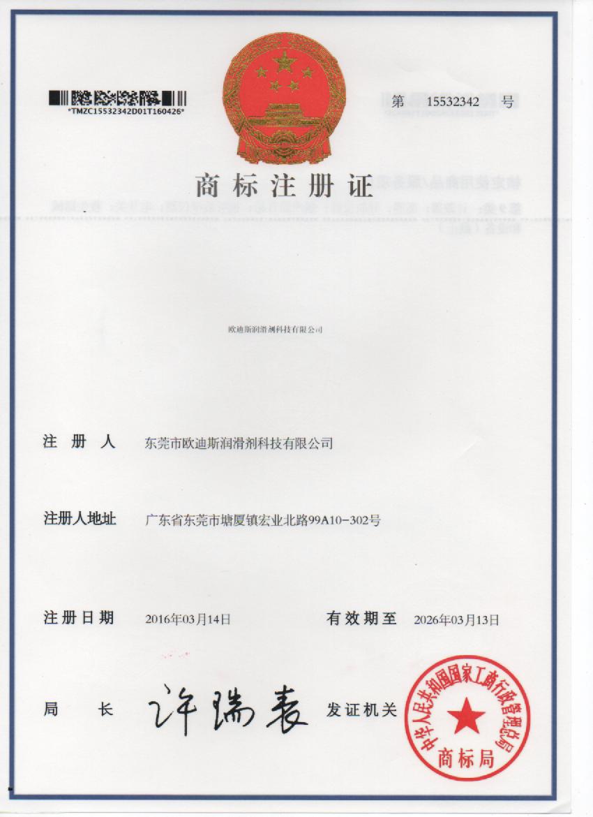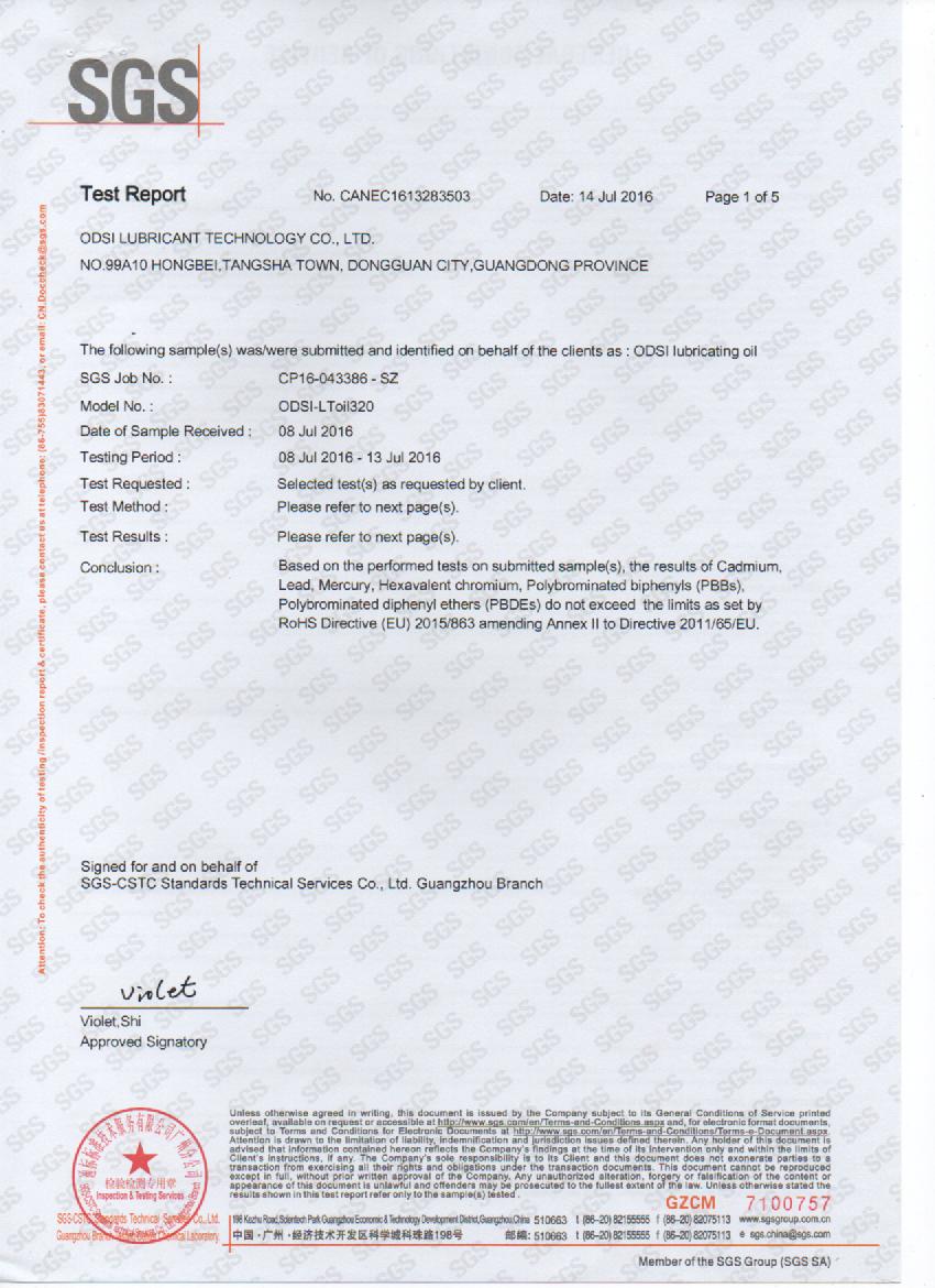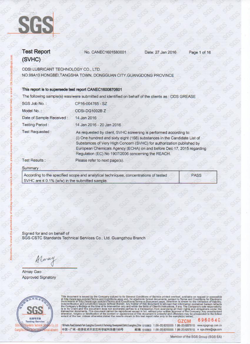 取得認(rèn)證單位:Dongguan ODS lubrication Co., Ltd.
